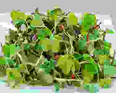 Green Pea microgreens are a favorite here! The tendrils add a unique texture while the stems have the same familiar crunch and sweet flavor of full grown peas. The flavor profile of pea shoots is very mild. They lend a tender crispness to any dish whether served raw or cooked. And let me tell you, they are equally delicious both ways.